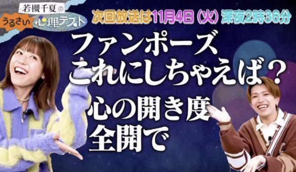 番組では、タレントの若槻千夏さんとゲストの方々が、オリジナル心理テストをテーマに盛り上がりながらトークを展開。