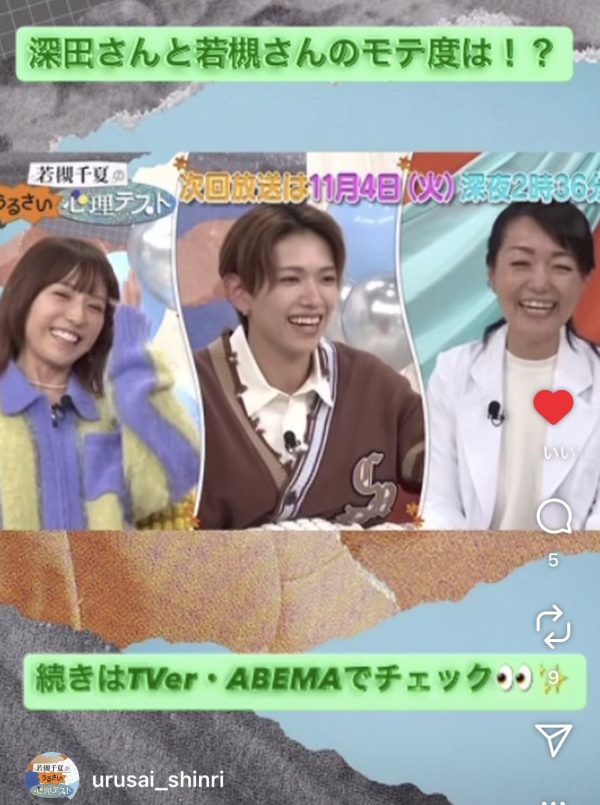 テレビ朝日「若槻千夏のうるさい心理テスト」 にて、心理テストの監修およびスタジオでの解説を担当させていただいております。