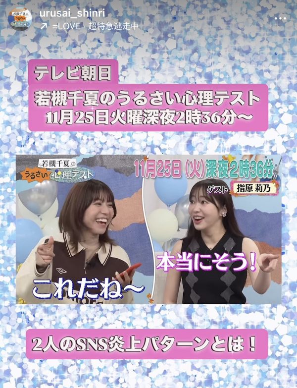 【テレビ出演・監修のお知らせ】11月25日(火)OAテレビ朝日「若槻千夏のうるさい心理テスト」 にて代表の小高千枝が心理テスト監修・解説をさせていただきました。