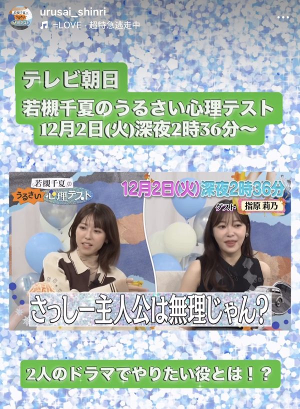 【テレビ出演・監修のお知らせ】12月2日(火)OAテレビ朝日「若槻千夏のうるさい心理テスト」 にて代表の小高千枝が心理テスト監修・解説をさせていただきました。