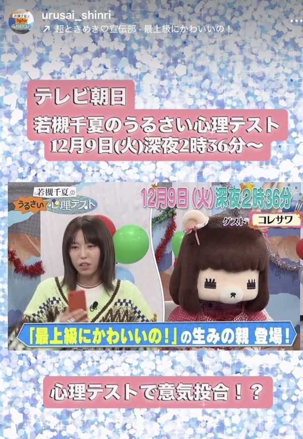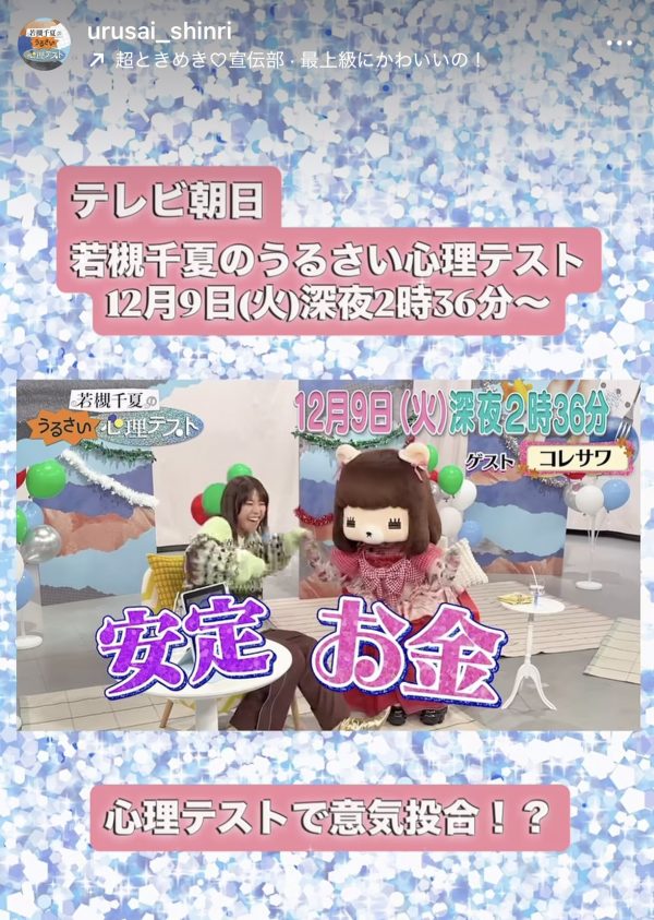 【テレビ出演・監修のお知らせ】12月9日(火)OAテレビ朝日「若槻千夏のうるさい心理テスト」 にて代表の小高千枝が心理テスト監修・解説をさせていただきました。